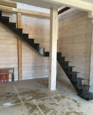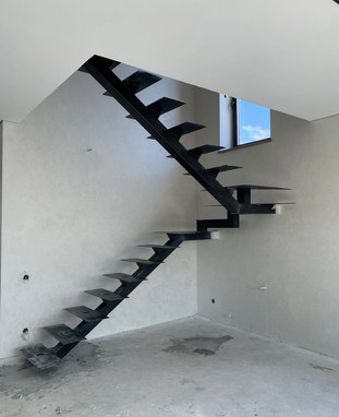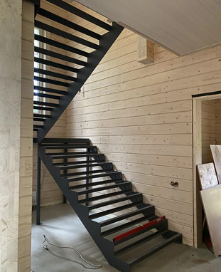 Это металлокаркас с одной центральной направляющей. Подступенки не обшиваются, а пространство под лестницей остаётся открытым. Свет свободно проходит между ступенями, за счёт чего конструкция выглядит воздушной и современно вписывается в интерьер. Отличный выбор, если нужна лёгкость вместо массивности.