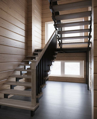 • Теплота и уют древесины. Деревянные перила и балясины придают лестнице стильный и теплый вид, что идеально сочетает функциональность и комфорт.