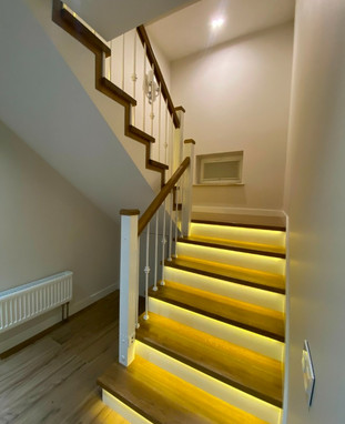 Скрытая проводка, чистый монтаж, строго по 3D-визуализации. Подсветка может быть встроена в подступенки, спрятана в боковой зашивке или пущена по нижней грани ступеней — всё зависит от архитектуры вашей лестницы и задачи по освещению. Учитываем каждый нюанс: от высоты потолков до расположения выключателей.
