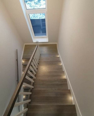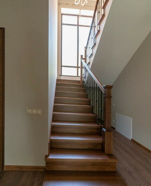 • Подоконники — из массива дерева, в цвет лестницы или пола. Чистовая подгонка, тонировка в цвет лестницы, скрытый крепёж.
